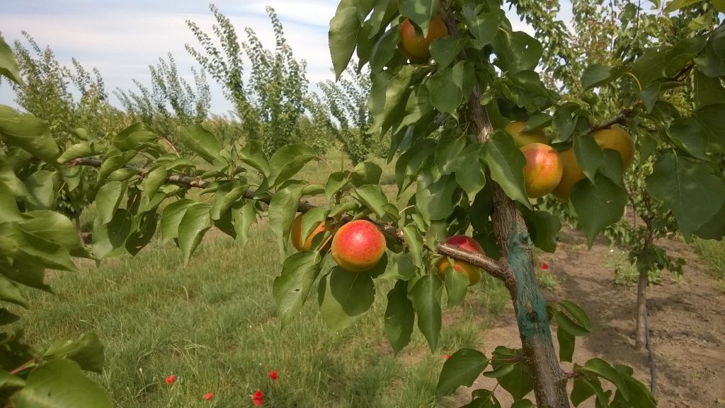 Apricot orchard with irrigation